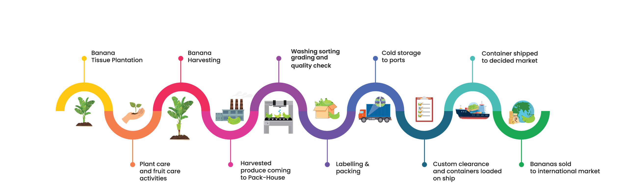 “We specialize in exporting premium-quality bananas to international markets. Known for their impeccable appearance and exceptional taste, our bananas have become the preferred choice of consumers worldwide.”