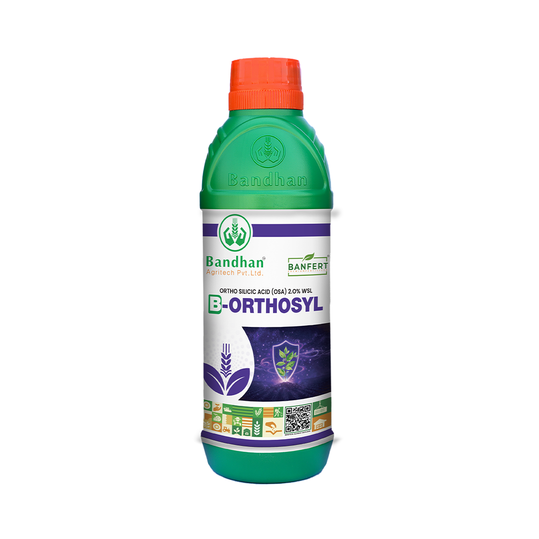 Banfert Ortho Silicic Acid is a water-soluble liquid beneficial element fertilizer containing 2.0% Ortho Silicic Acid, the most plant-available and bioactive form of Silicon. It delivers Silicon in a readily absorbable form, enhancing uptake efficiency and supporting stronger plant structure. Regular application helps improve stem strength, enhance tolerance to abiotic stress (heat, drought, salinity), promote better nutrient utilization, and support overall crop vigor and productivity.