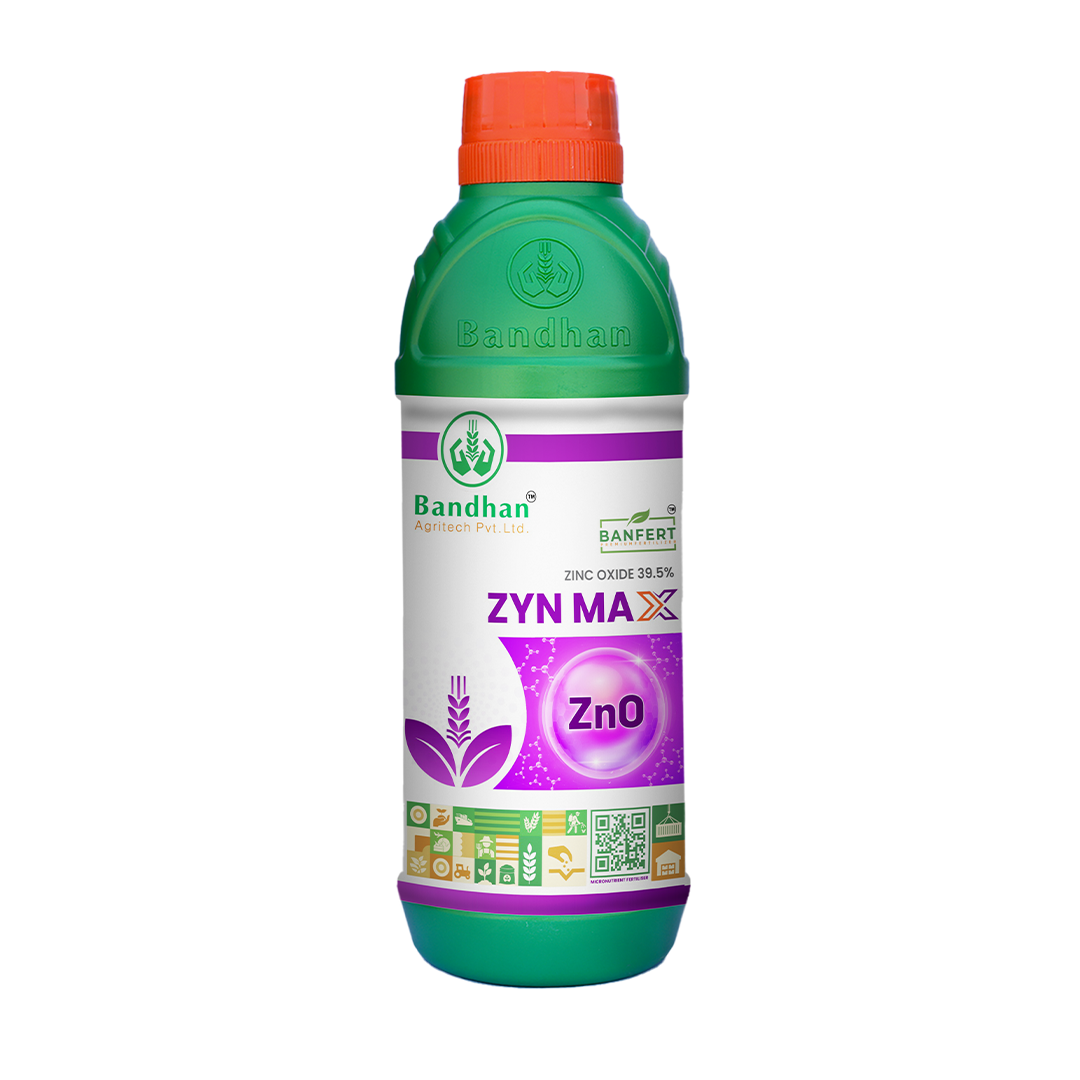 Banfert Zyn Max is a high-concentration Zinc Oxide Suspension Concentrate (39.5% Zn) formulated for rapid correction of zinc deficiency and improved crop growth. Its dense SC formulation ensures uniform dispersion, excellent leaf coverage, and efficient zinc absorption through foliar application and fertigation. Banfert Zyn Max supports key plant functions such as enzyme activation, chlorophyll formation, and hormone regulation, leading to better vegetative growth, flowering, fruit set, and yield quality.