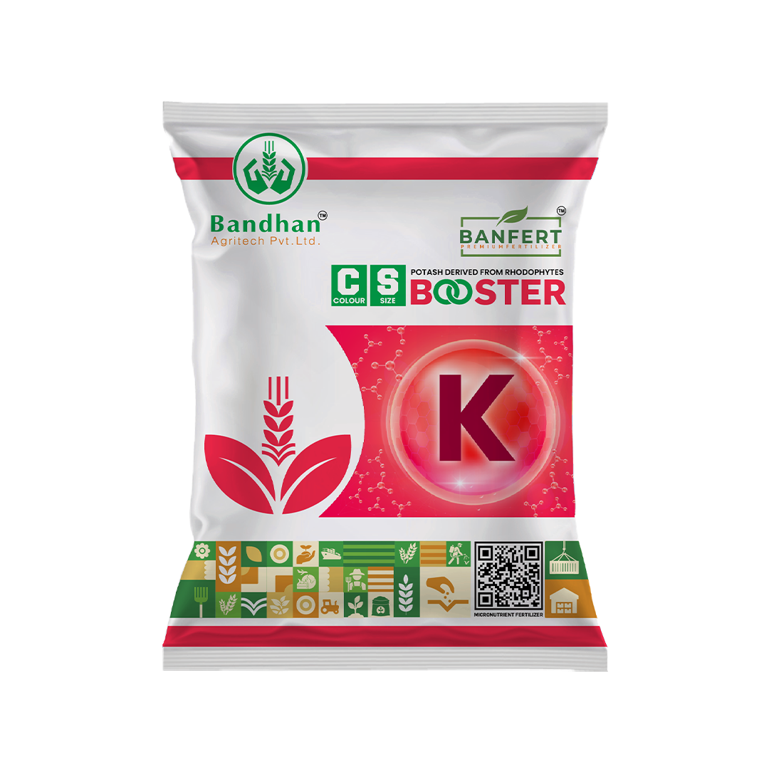 CS Booster is an organic, water-soluble potash fertilizer derived from Red Seaweeds (Rhodophytes). It improves soil structure, enhances moisture retention, and boosts crop metabolic functions, leading to healthier growth, higher yields, and superior quality produce. Suitable for all crops, it can be applied as a foliar spray, drip, or fertigation solution, offering a safe, eco-friendly, and sustainable alternative to synthetic fertilizers.