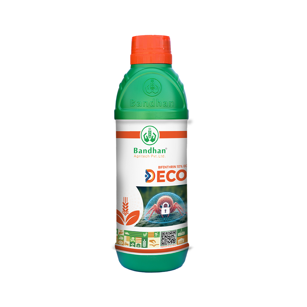 DECO is a broad-spectrum insecticide formulated with Bifenthrin 10% EC (Emulsifiable Concentrate). It provides effective control of a wide range of insect pests through contact and stomach action. After application, the insecticide affects the nervous system of insects, causing rapid knockdown and long-lasting protection to crops.