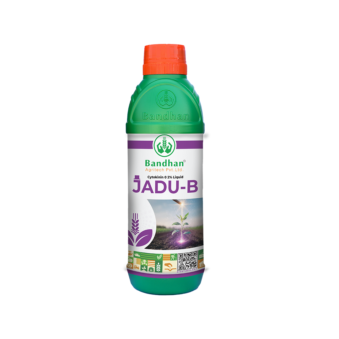 Jadu B is a liquid plant biostimulant containing Cytokinin 0.2% derived from Zea mays (maize) kernels. It supports crops during the flowering stage by promoting cell division, flower initiation, and retention, while delaying premature leaf senescence. Jadu B improves overall plant vigour and tolerance to abiotic stress, ensuring better reproductive growth.