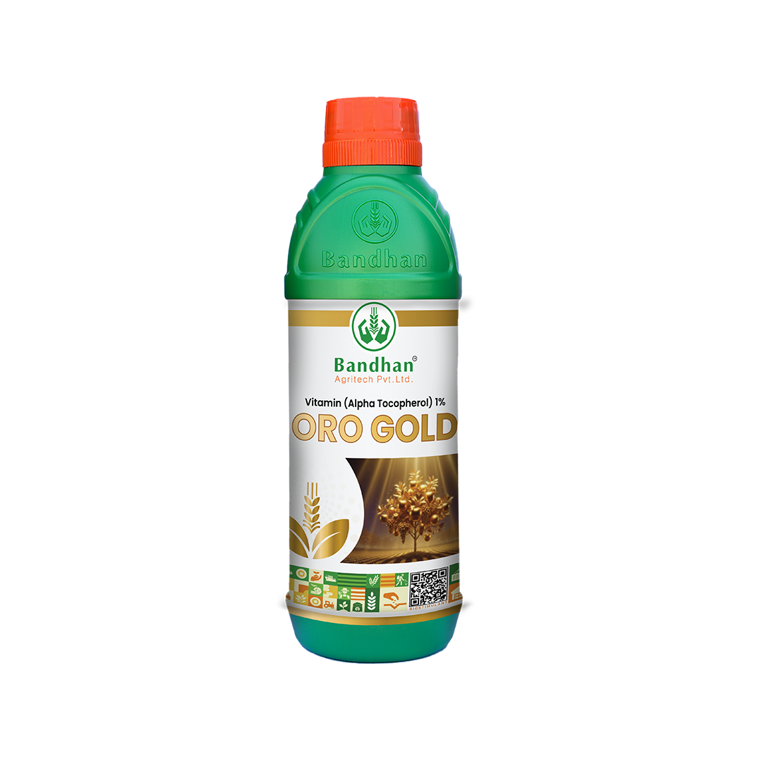 ORO Gold is a premium liquid formulation of Alpha Tocopherol (Vitamin-E) derived from sunflower oil. It plays a vital role in improving reproductive growth by enhancing female flower formation, pollen viability, and fruit retention. ORO Gold also improves plant stress tolerance and supports active cell division and expansion, resulting in better yield and quality.